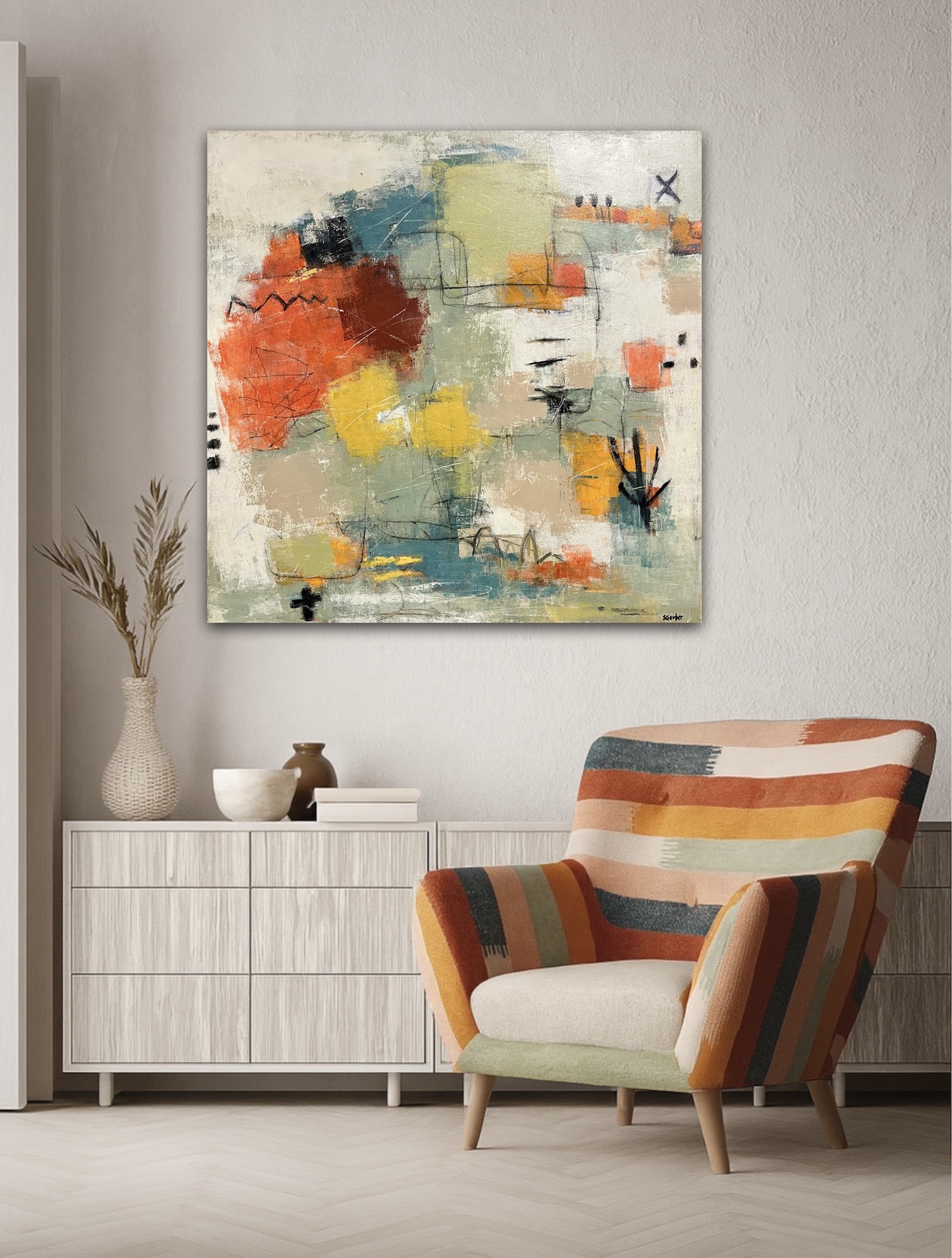 Warm, bright southwest colors with lots of texture and playful mark making.