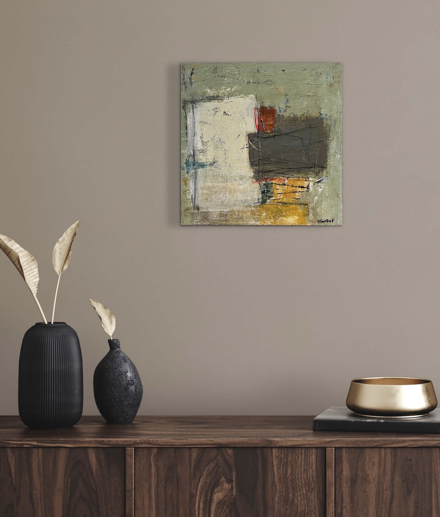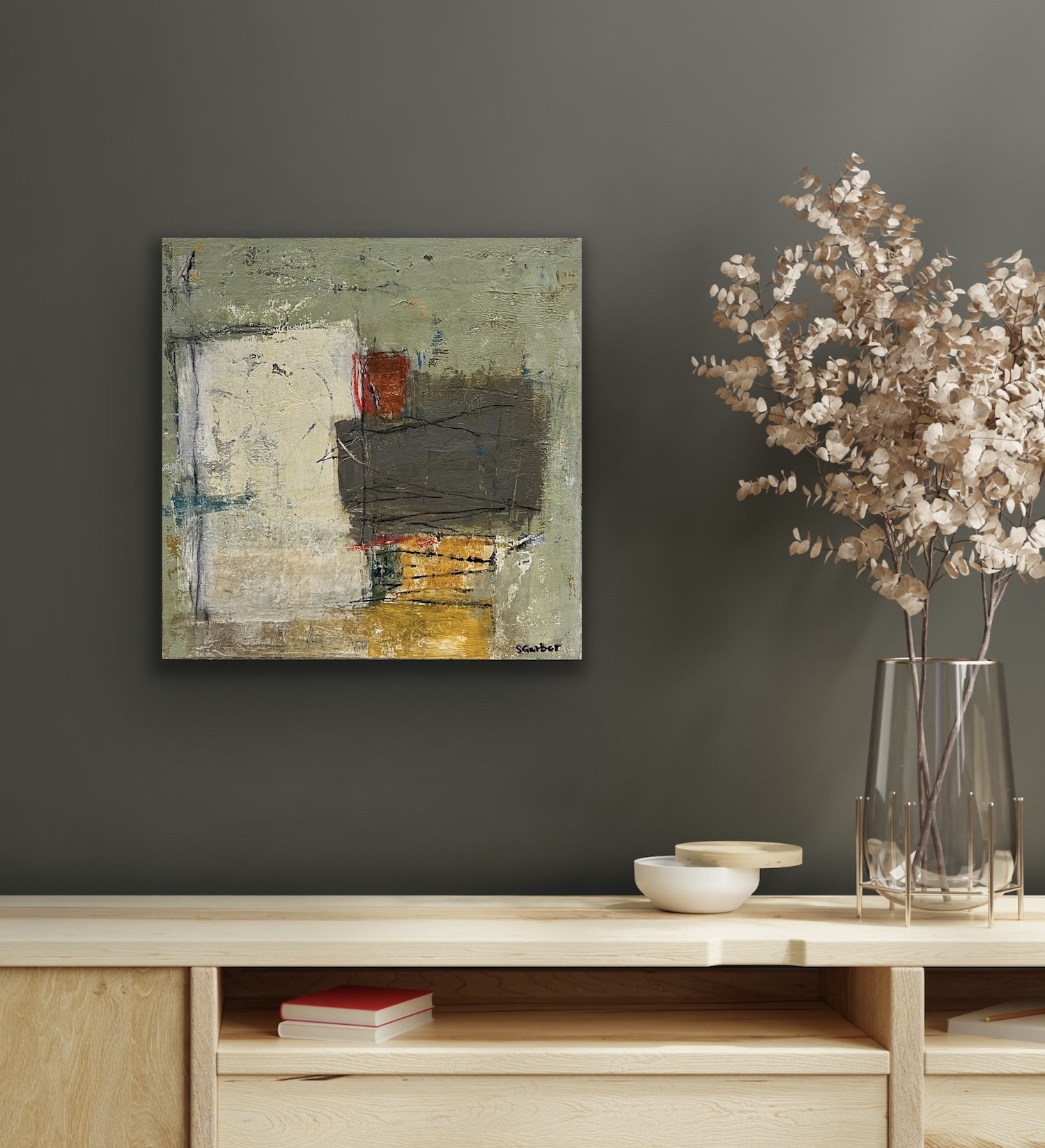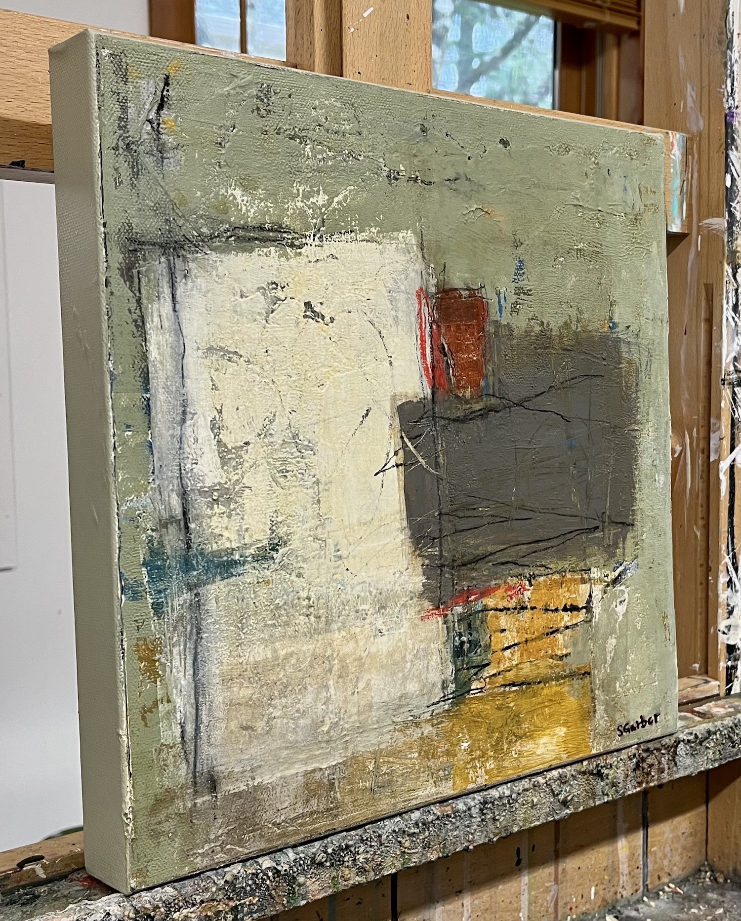 Mixed media acrylic on gallery wrapped canvas 12 x 12 x 1.5 inches.