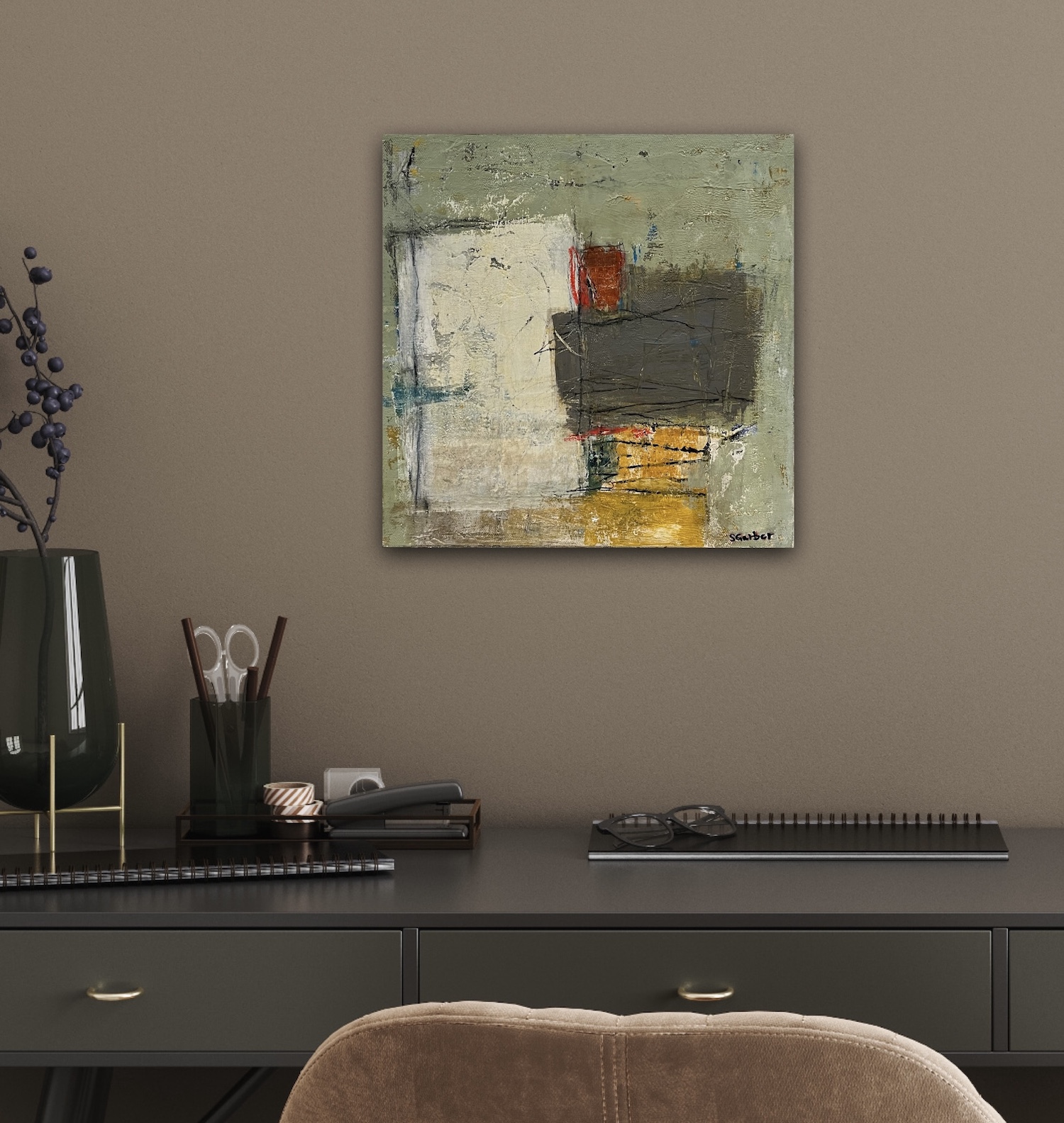 Layered color and subtle marks hold traces of memory and experience within the surface.