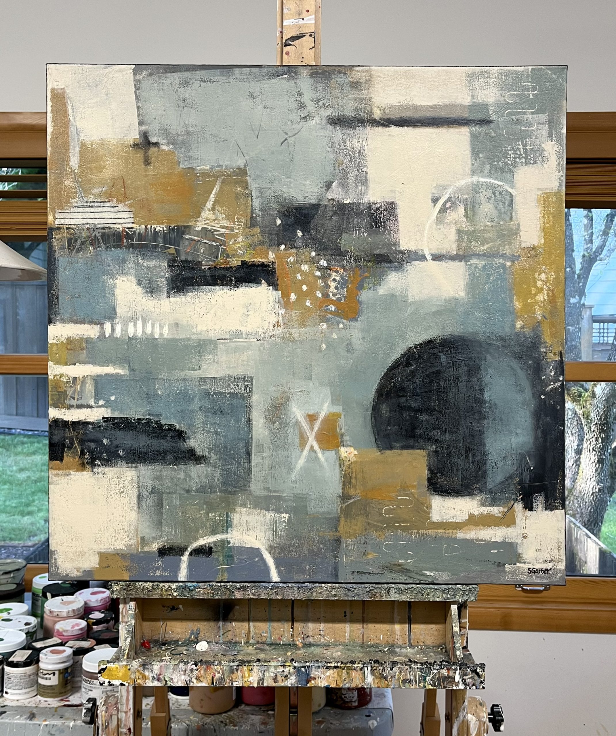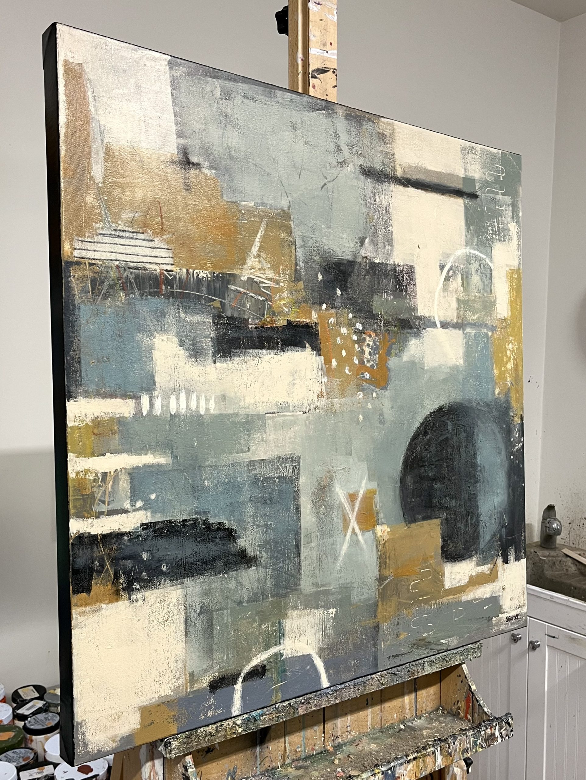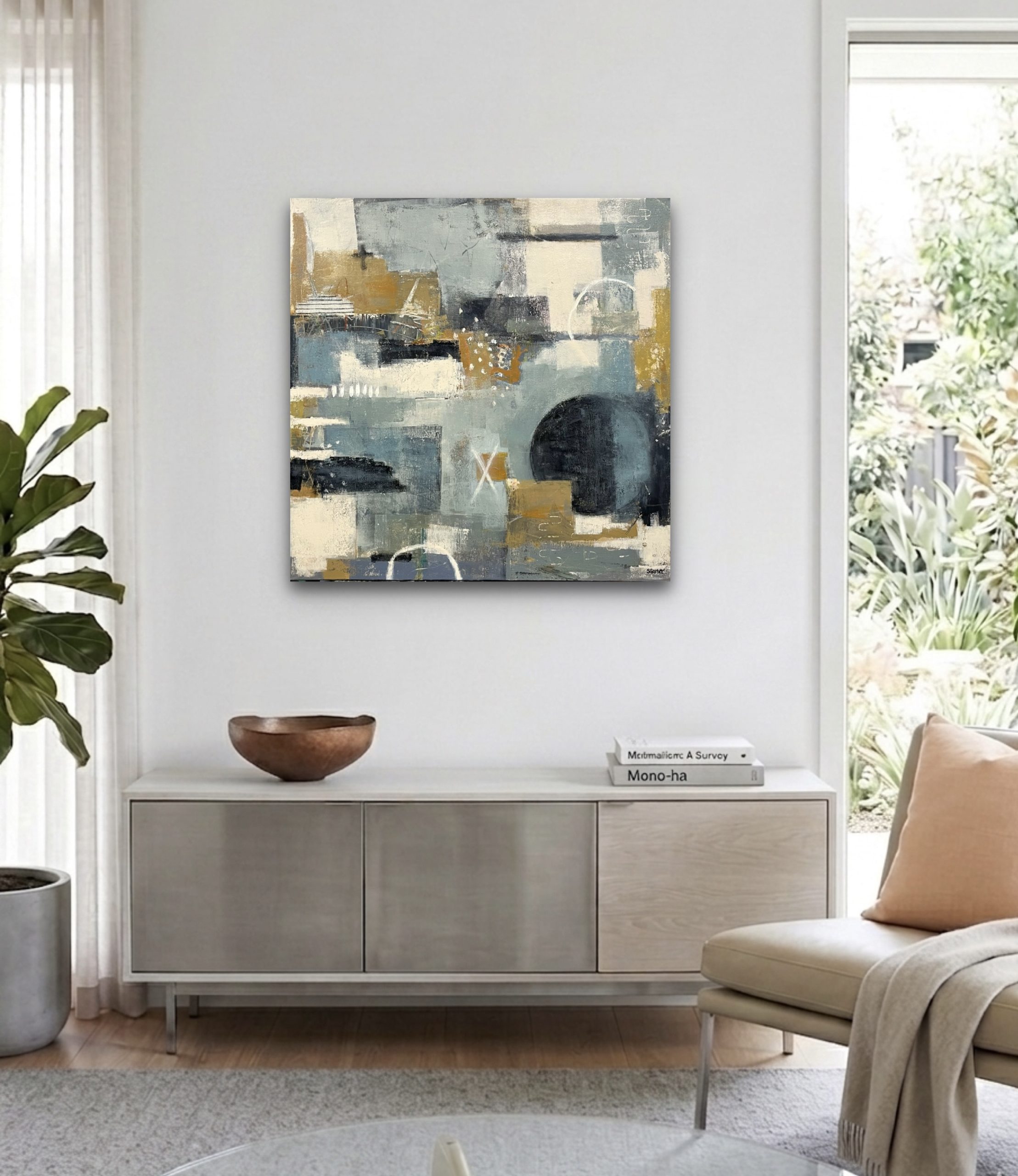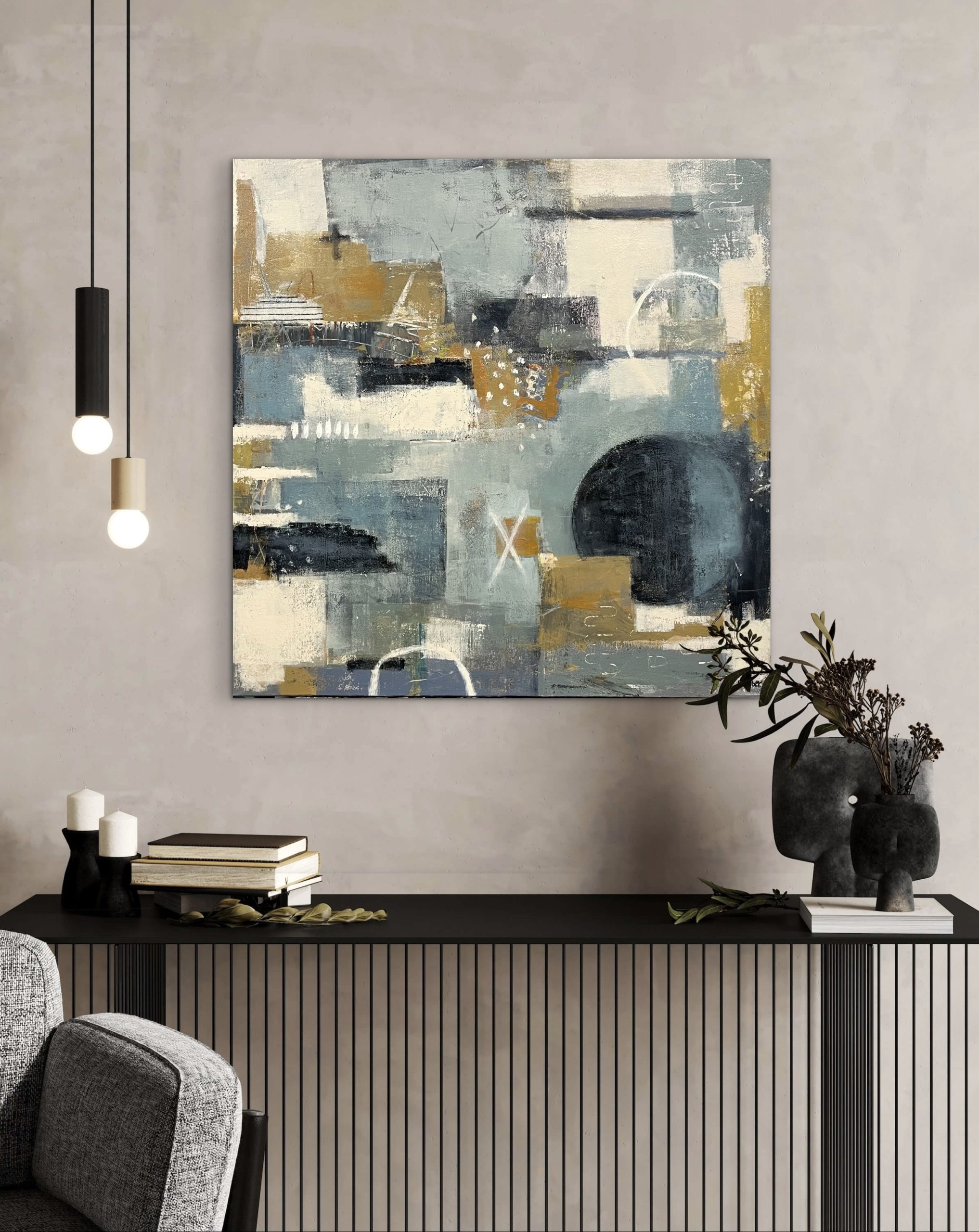 A sophisticated interplay of geometric forms and expressive textures.