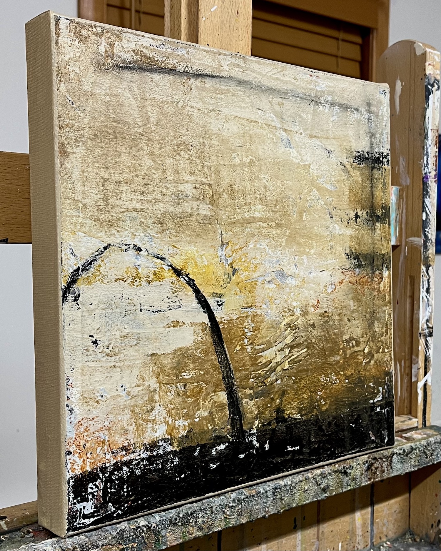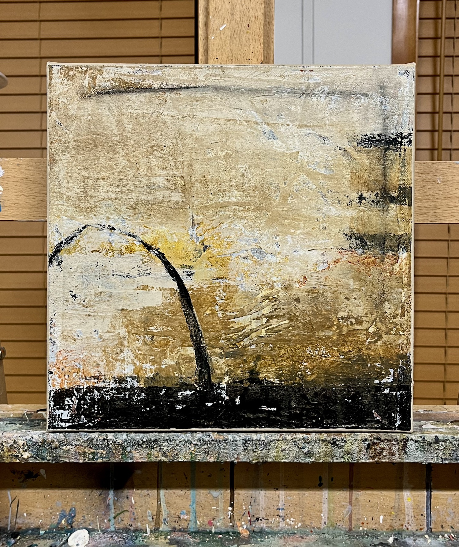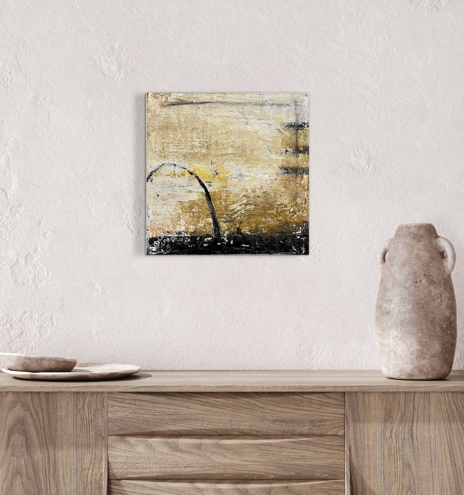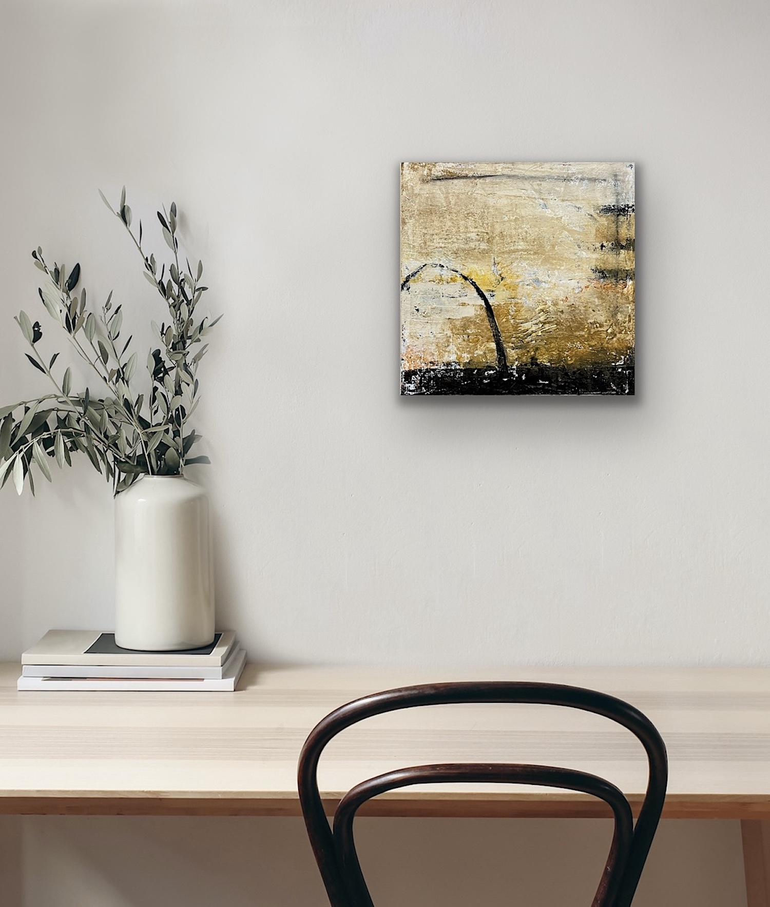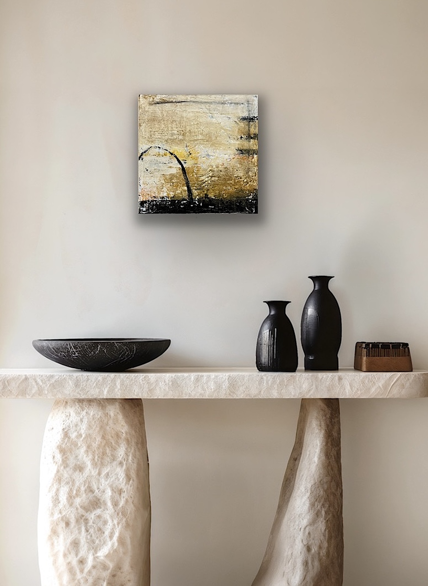Subtle shifts in tone and texture create stillness, allowing the painting to hold light and line.
