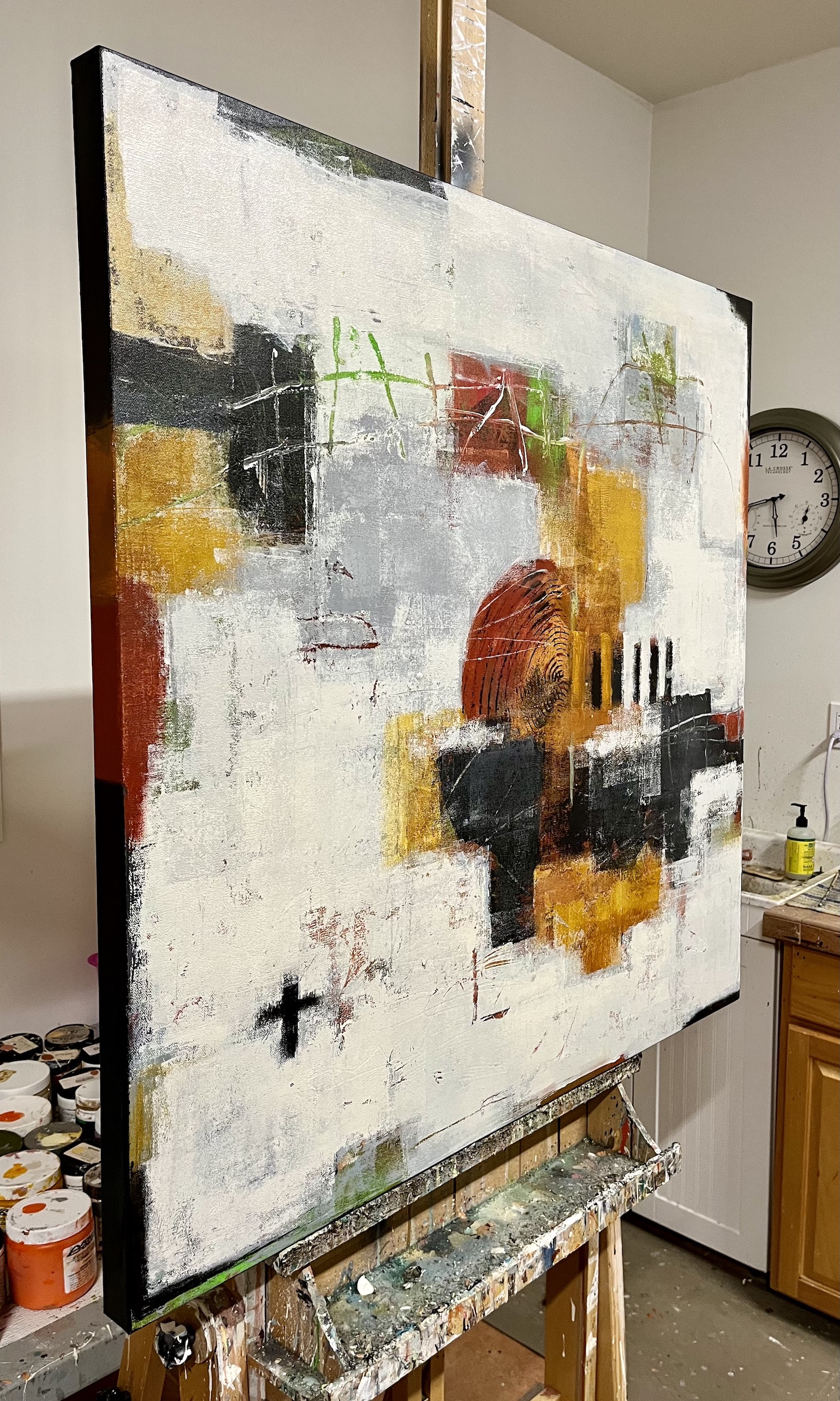 Abstract acrylic painting on gallery wrapped canvas 36 x 36 x 1.5 inches.